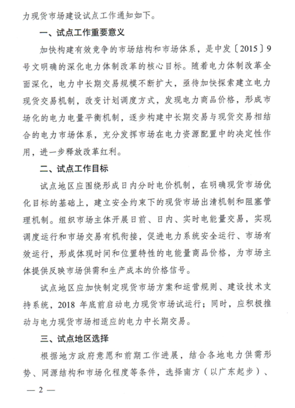 获悉,中国市发改委、中国能量局于8月28日联合下发了《关于开展电力现货市场建设试点工作的通知》特急文件,通知中称,2018年底前启动电力现货市场试运行,积极推动与电力现货市场相适应的电力中长期交易。结合各地电力供需形势、网源结构和市场化程度等条件,选择南方(以广东起步)、蒙西、浙江、山西、山东、福建、四川、甘肃等8个地区作为第一批试点,加快组织推动电力现货市场建设工作。