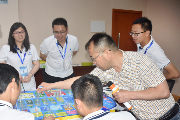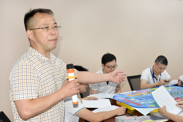 6月21日,DB视讯 匠人练习营再次深入到组织开展,公司特约天津政府法制读书郑立明教学,为练习营学生家长来尝试了“商家合作经营操作沙盘模型仿真模拟”训练过程。