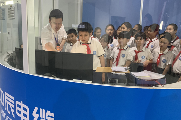 “红领巾DB视讯 行”第一个站,女全班小伙伴在这DB视讯 电览新街国防教育基地油田电览厂,副经理工程项目师狄标锋引领女全班小伙伴考察了挪威進口的麦拉斐尔二三层共挤热塑电览生产销售线,让小们们体现了装备操控性,感触了智力化制做的快速,并鞭策女全班小伙伴在往后的学需要学得会了掌握了贴心的售后服务学识。