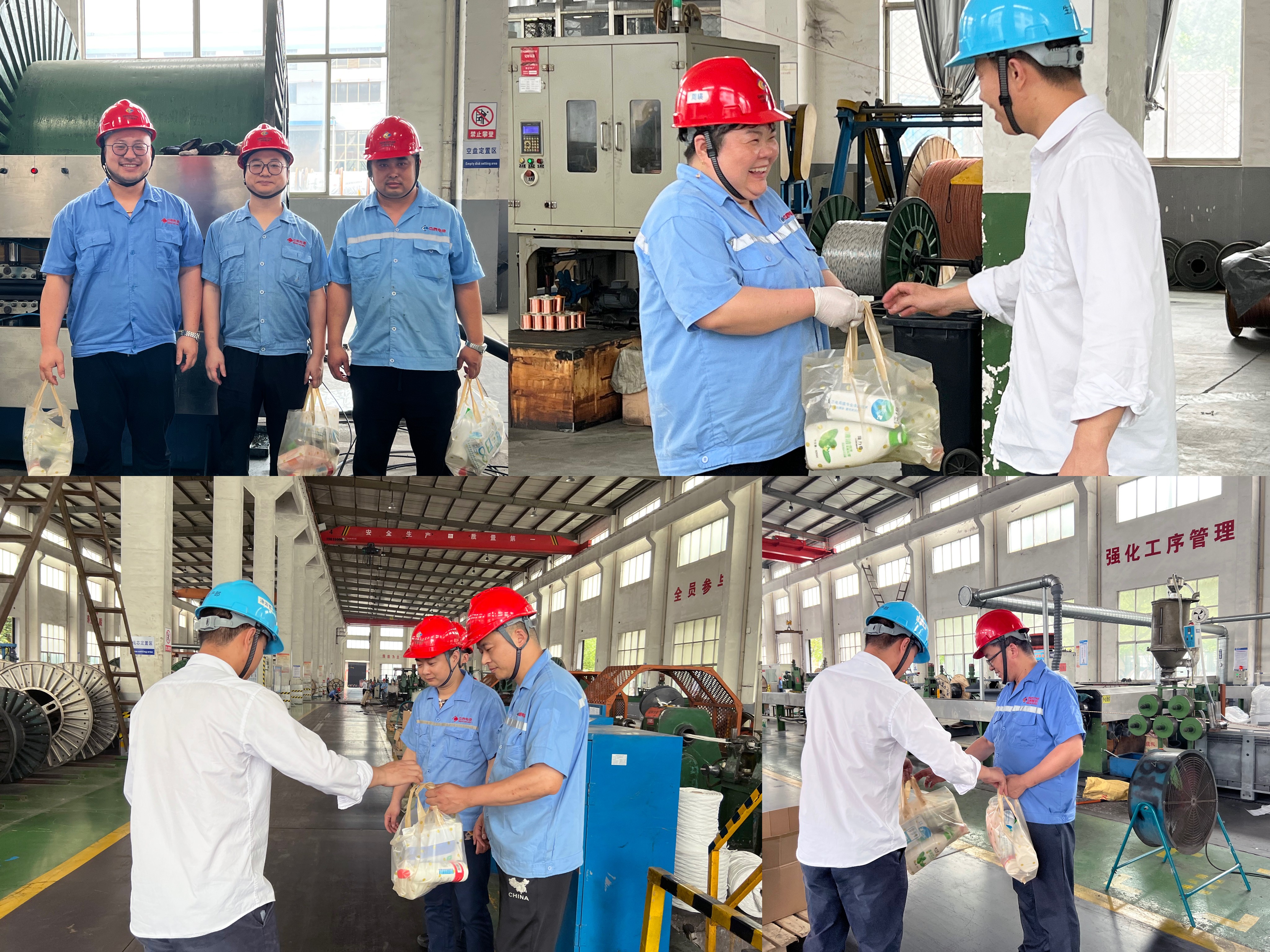 炎炎夏日似火,无情人地炙烤地面,总老总姜一鑫和副总裁老总张茜对应为第一线厂区营业员送去1杯杯沁人的内心脾的消暑冰饮。在此大热天DB视讯 不但有“照射”,重在有“水温”。